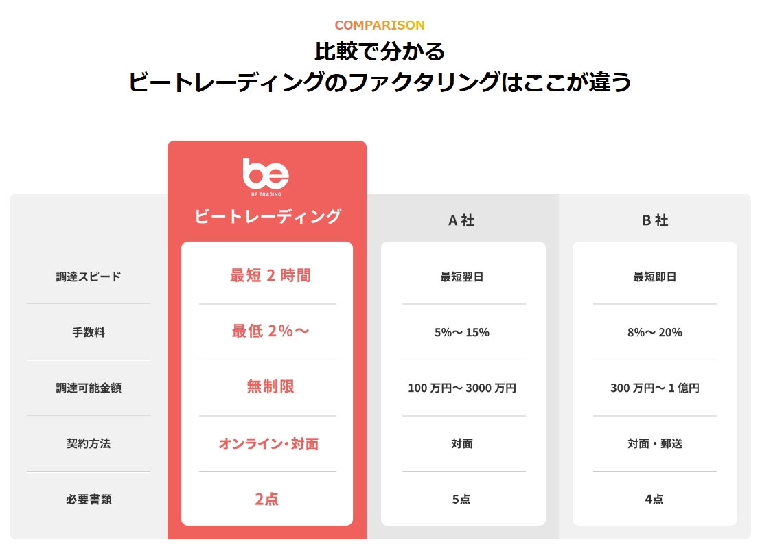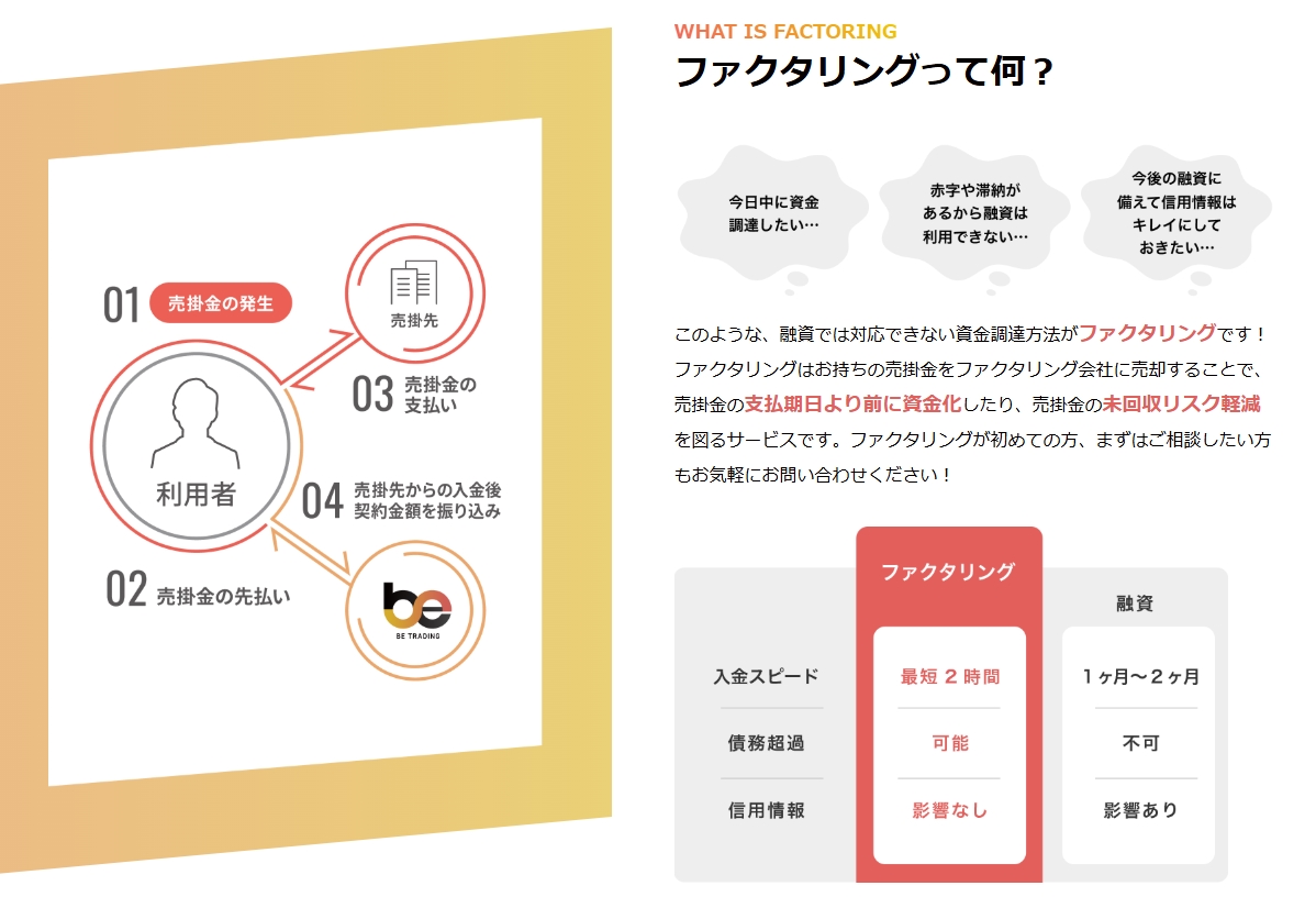 中でも、実績・信頼性・サポート体制に優れた「ビートレーディング」は、初めての方にも安心して利用できるファクタリングサービスです。